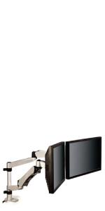 - Contemporary design with stacking columns raises monitor from 1" to 5 7/8" in increments of 1 5/8" to an ergonomically correct level